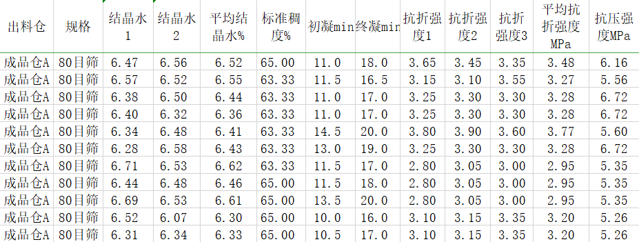 石膏粉生產(chǎn)化驗(yàn)檢測(cè)數(shù)據(jù)