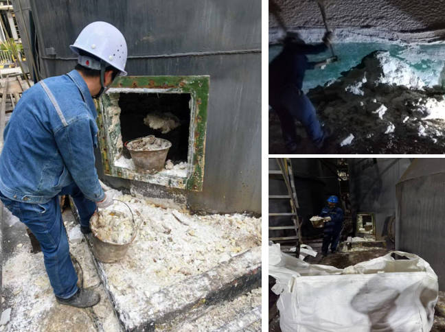 <pclass="MsoNormal"style="margin-top:6.0pt;mso-para-margin-top:.5gd;text-indent: 28.0pt;mso-char-indent-count:2.0"> <spanlang="EN-US"style="font-size:14.0pt; font-family:宋體;mso-bidi-font-family:宋體">4<spanstyle="font-size:14.0pt; font-family:宋體;mso-bidi-font-family:宋體">月2日,威遠(yuǎn)澤天班組自主對事故箱進行了充分的通風(fēng)、制定了積鹽清理作業(yè)方案。因事故箱內(nèi)部空間狹小、作業(yè)環(huán)境復(fù)雜,氨氮味……